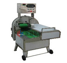 1、大型切菜機當物料由送料器壓向動刀盤時,動刀盤把物料切成片狀,再由動刀盤刀片下麵的斜麵把片壓向定刀盤,定刀盤上平行排列的刀片或方格刀片把片分割成條或粒,再由撥料盤撥出。本機具有體積小、功效高、功能齊全的優點,能加工各種規格的 片、條、絲、粒狀瓜果。